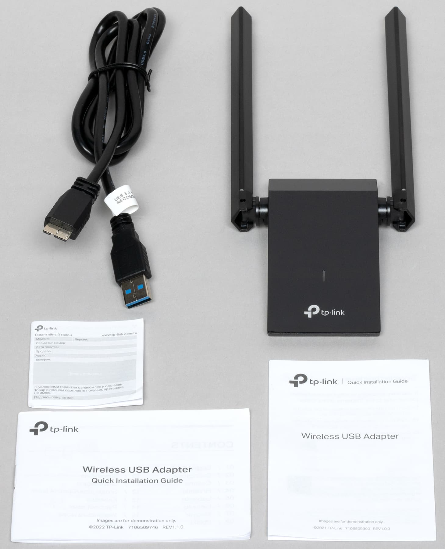 В комплекте с адаптером поставляется кабель USB 3 длиной около 1 м, руководство по быстрой установке, лист с условиями гарантии и краткое описание устройства.