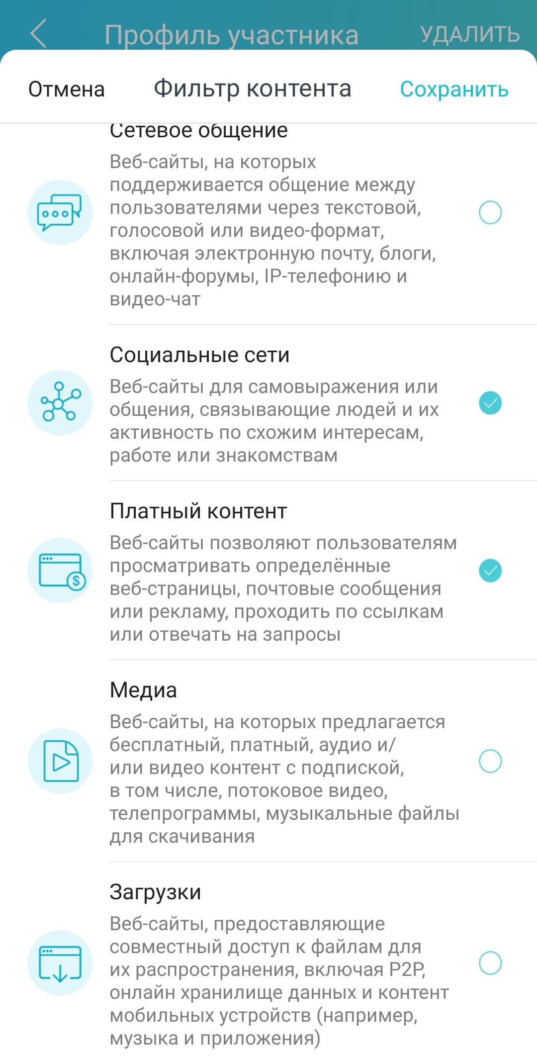 | VPN-клиенты | поддержка на уровне профилей |