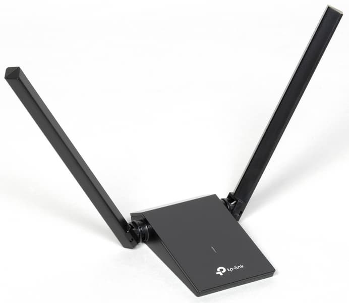 Вместе с роутером целесообразно использовать беспроводной USB-адаптер TP-Link Archer TX20U Plus, который отличается высокой максимальной скоростью соединения 1201 Мбит/с. Двухантенная конструкция улучшает качество сигнала и увеличивает скорость передачи данных. Поддержка MU-MIMO и OFDMA обеспечивает низкую задержку в сетях со множественными подключениями даже при их высокой загруженности, а Beamforming ориентирует радиопоток в нужном направлении для повышения стабильности соединения. Драйверы устройства хранятся в его памяти и устанавливаются автоматически при подключении адаптера к порту USB 3. В ходе наших испытаний выявлено, что даже в неблагоприятной обстановке адаптеру удается поддерживать скорость на гигабитном уровне.