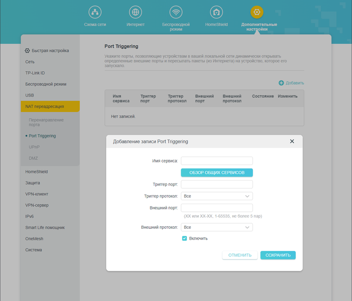 Запуск портов (Port Triggering) дает возможность динамически открывать порты на внешнем интерфейсе WAN при наступлении того или иного события и привязывать их к портам внутренней сети. Событием считается отправка триггерного пакета на заданный порт.