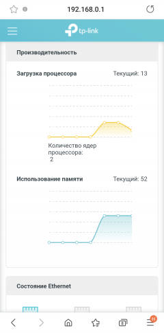 Информационные панели интернет-подключения, текущего состояния роутера и загрузки аппаратных компонентов высокоинформативны. Пользоваться ими удобно, но приходится постоянно прокручивать содержимое, поскольку информации много, и на одном экране смартфона она не помещается.