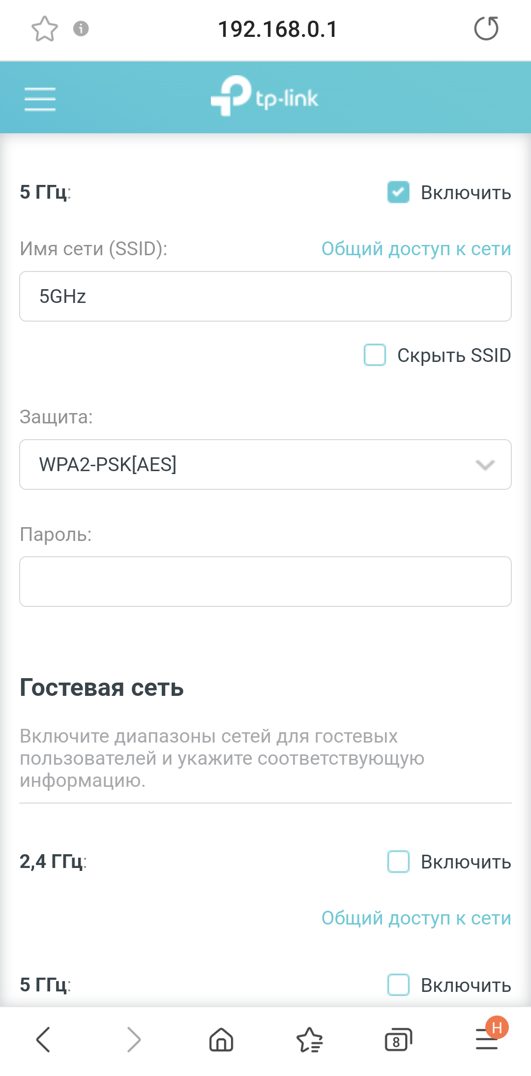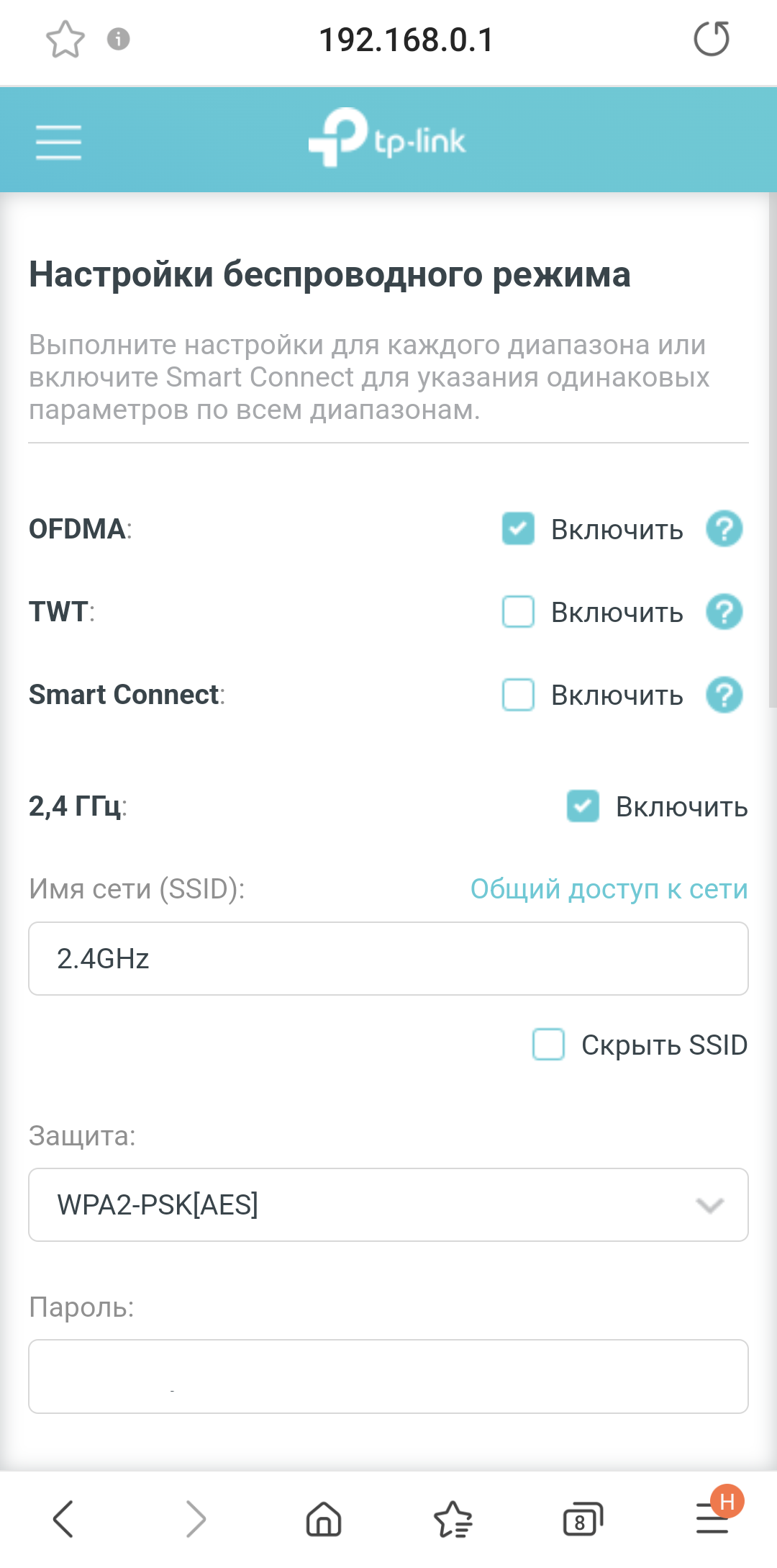 Настройки Wi-Fi также аналогичны веб-интерфейсу.