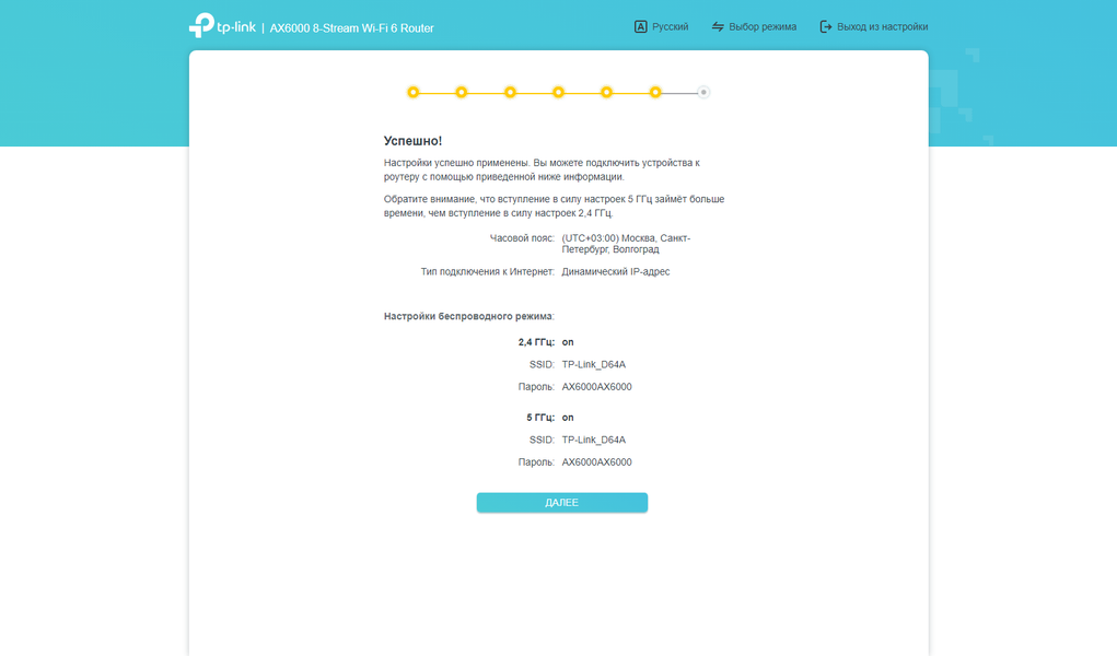 Опционально можно здесь же зарегистрировать устройство в облаке TP-Link для доступа через мобильное приложение. В целом, многим пользователям вполне будет достаточно только этого мастера для настройки роутера.