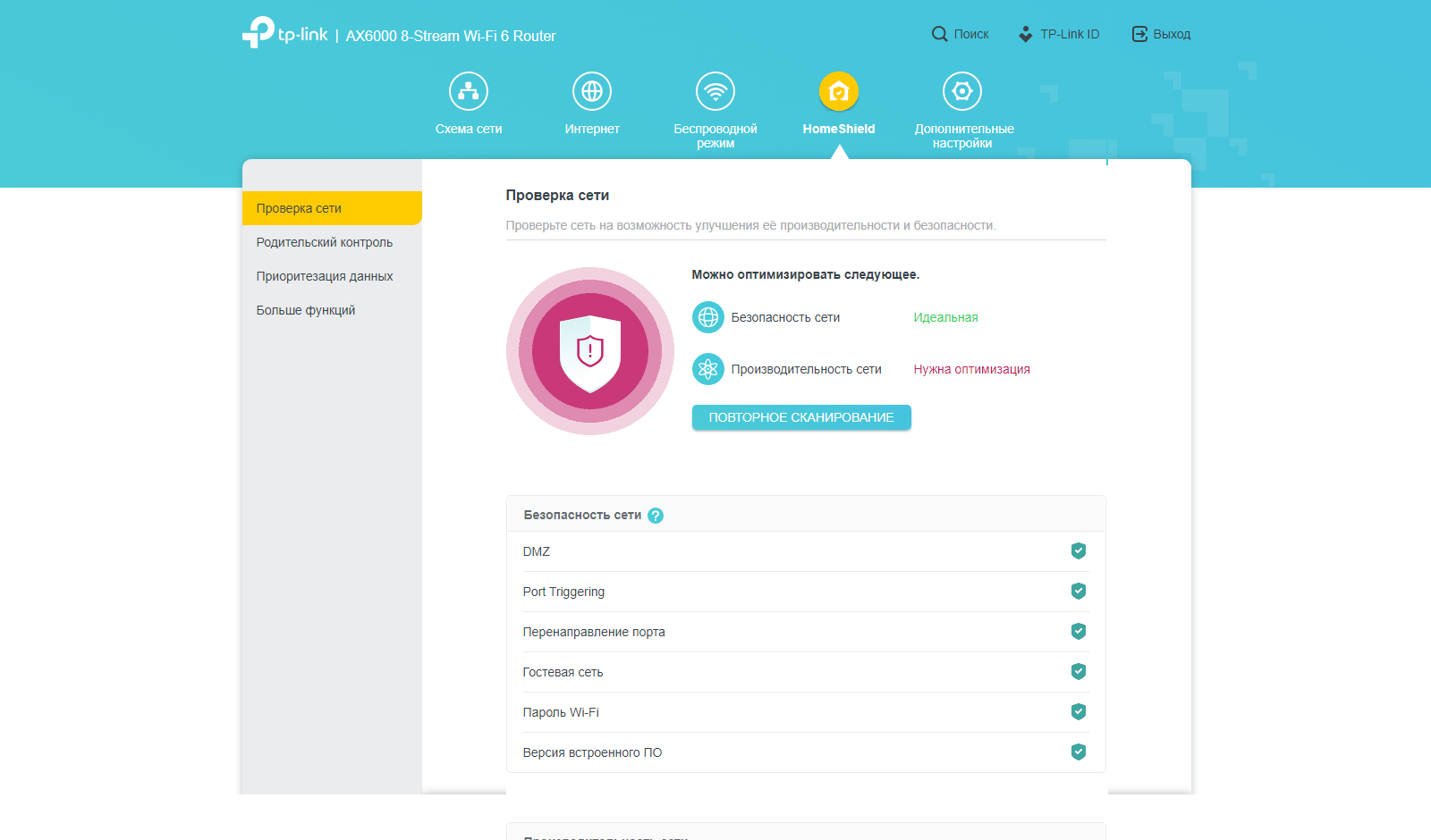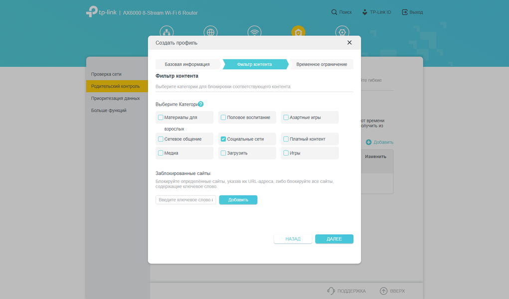 О наборе функций HomeShield мы также уже рассказывали в прошлых материалах. В случае варианта без платной подписки можно провести короткий тест на безопасность и эффективность сети, настроить родительский контроль на базе профилей с блокировкой ресурсов по категориям или спискам и полную блокировку доступа в интернет на один период времени («ночное время»), а также ограничения скоростей приема и передачи индивидуально по клиентам.