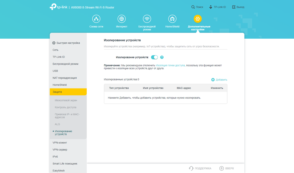 Для межсетевого экрана кроме привычных опций предусмотрена функция изолирования клиентов. Предполагается, что она будет использована для устройств IoT с целью повышения безопасности основной домашней сети.