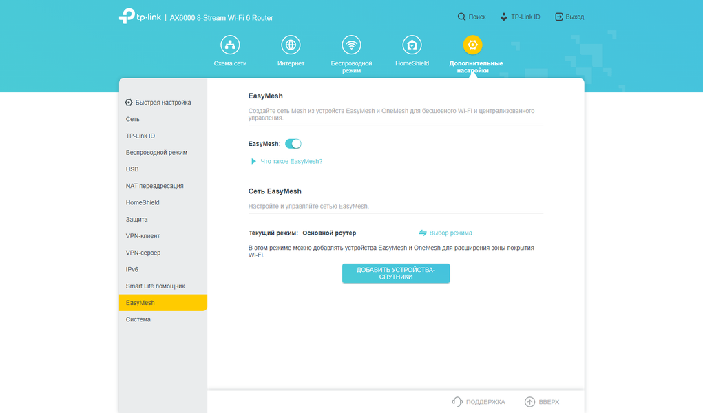 Система беспроводной Mesh-сети у TP-Link называется EasyMesh. Совместимыми являются большинство актуальных моделей роутеров и повторителей. Это позволяем вам при покупке нового роутера установить его в роли основного, а старый переключить в режим узла Mesh-сети. Производитель акцентирует внимание на простой настройке, масштабируемости и бесшовном переключении клиентов.