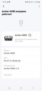 Роутер TP-Link Archer AX80(EU) основан на современной высокопроизводительной платформе MediaTek, которая сегодня очень часто встречается в беспроводных устройствах разных производителей, что говорит о ее качестве и стабильности. Продукт относится к классу AX6000, имеет порт проводной сети с поддержкой скорости 2,5 Гбит/с и порт USB 3.0. Так что в целом по совокупности характеристик его можно отнести к верхнему сегменту.