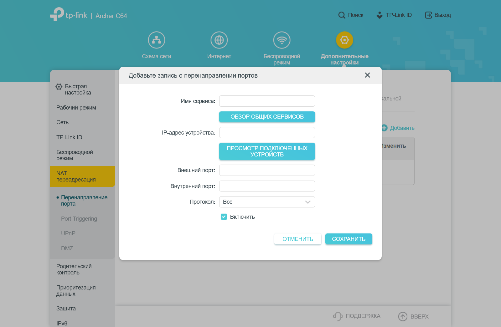 При наличии «белого» адреса от провайдера, можно использовать функции трансляции переключения портов для обеспечения удаленного доступа к сервисам локальной сети. Кроме того, в роутере предусмотрена поддержка протокола UPnP и выделение хоста в DMZ.