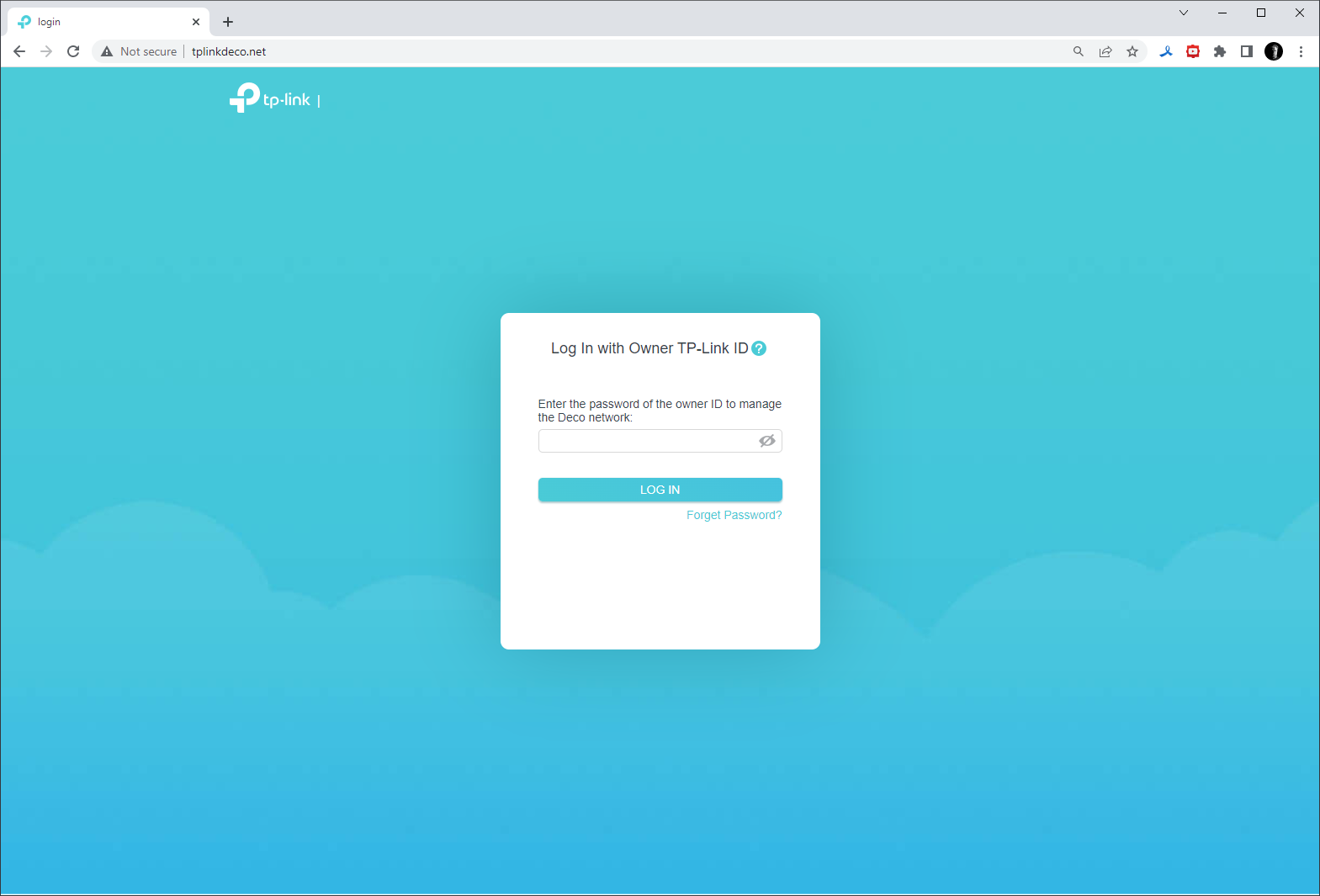 После подключения клиентского устройства к аппаратному блоку посредством прилагаемого в комплекте патч-корда следует ввести в адресной строке браузера «tplinkdeco.net».