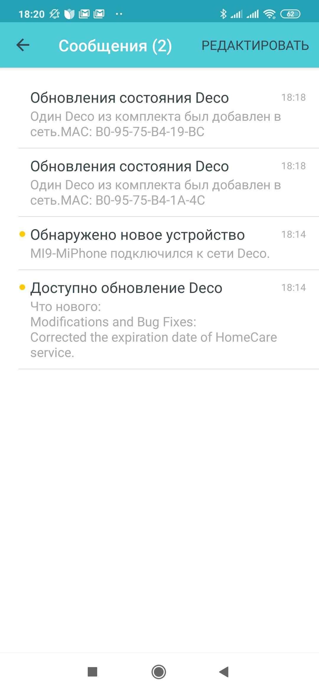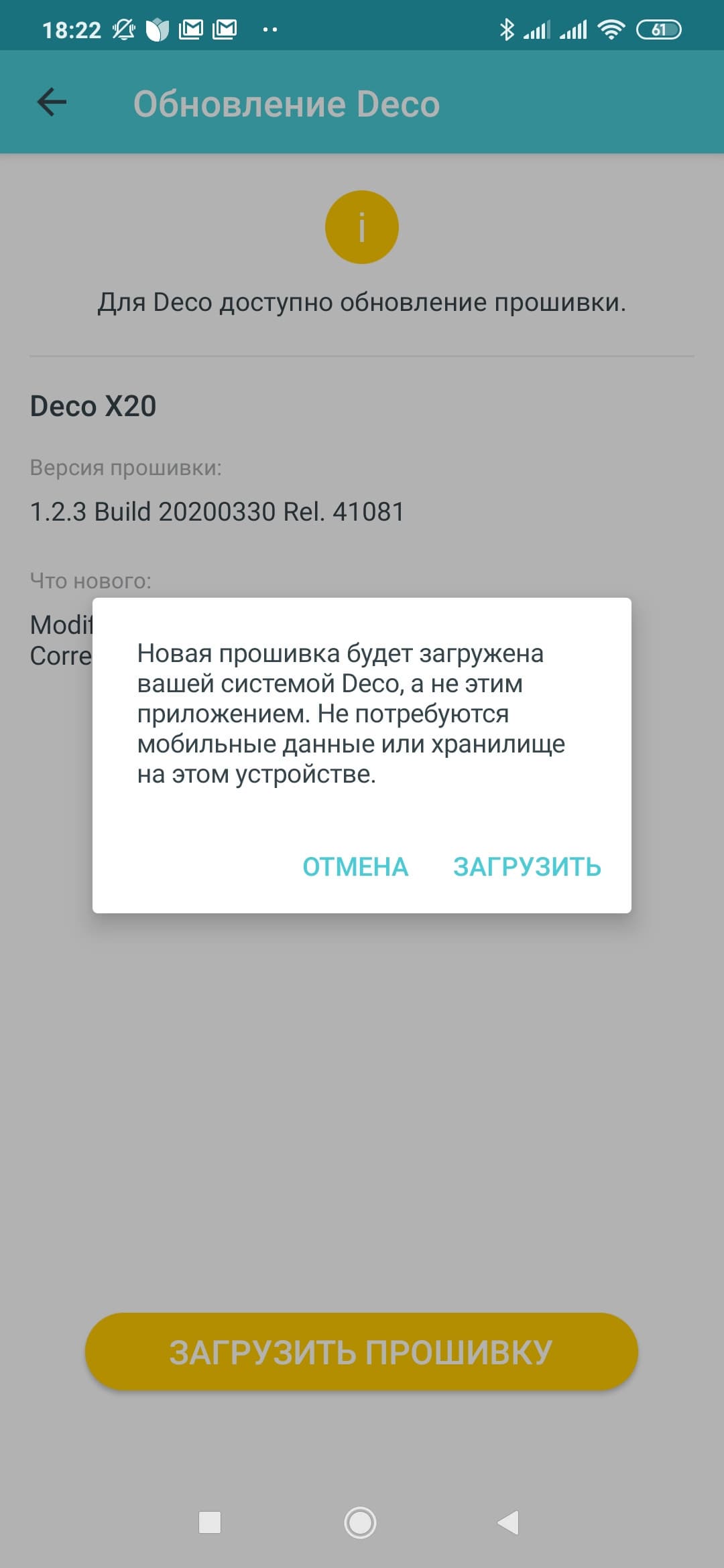 Пункт «Обновление Deco» представляет собой еще один способ проверки наличия новых версий прошивок и их установки.