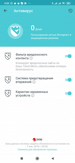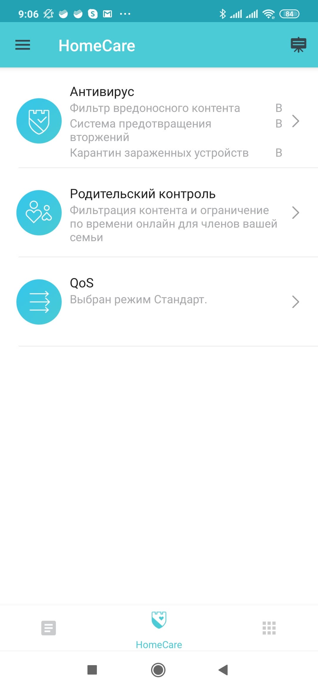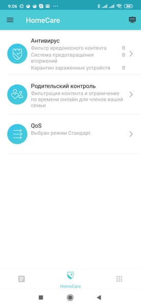 В нижней части окна можно переключиться с «Обзор» в «HomeCare» и «Еще». Система защиты сети и клиентов «HomeCare» предоставляет несколько функций. Прежде всего, это собственно защита на базе технологий TrendMicro, которую мы встречали в других устройствах. Она состоит из модулей фильтрации контента, системы предотвращения вторжений и карантина для зараженных устройств. При этом встроенная база системы обновляется через интернет автоматически и независимо от прошивки, что позволяет обеспечить эффективную работу сервиса.