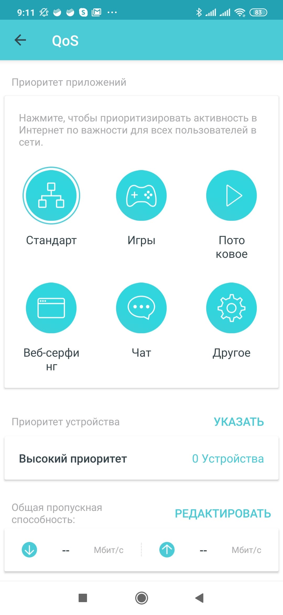 Функция управления полосой пропускания имеет пять предустановленных профилей для определенных типов приложений, один пользовательский профиль, допускающий редактирование, а также возможность добавить определенные устройства в список приоритетных. Возможности ограничивать по скоростям конкретных клиентов здесь нет.