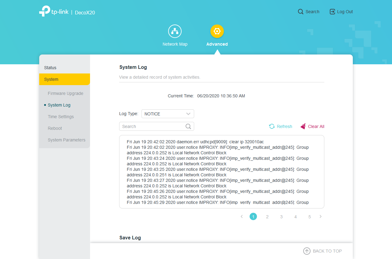 «System Log» позволяет посмотреть журналы событий системы, а также очистить их и скачать на компьютер.