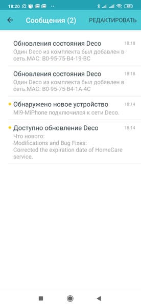 На главной странице программы есть специальный значок уведомлений. Благодаря ему мы узнали, что есть более новая версия прошивки и установили ее. Заметим, что прошивка загружается непосредственно в устройства и обновляются одновременно все участники сети. На все у нас ушло еще минут пять.