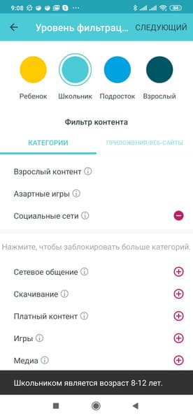«Родительский контроль» позволяет настроить пользователям профили фильтрации веб-контента, ежедневное ограничение времени в интернете, запрет использования сети в ночные часы. В дальнейшем этот профиль можно назначить на один или несколько клиентов.