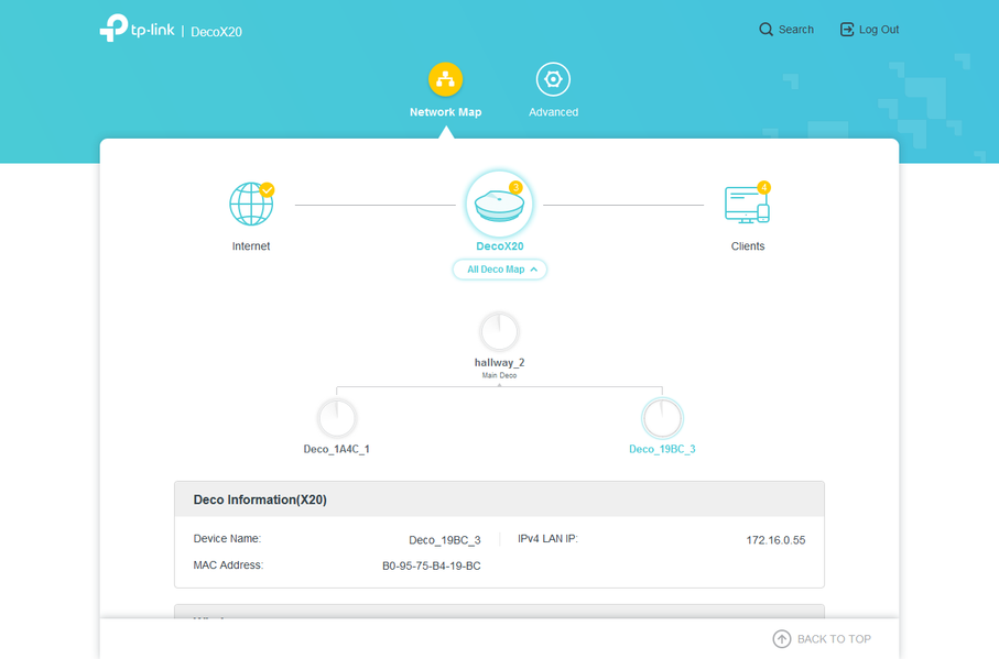 У основного узла системы есть и веб-интерфейс, защищенный паролем от привязанного облачного аккаунта TP-Link. Интерфейс имеет только английский вариант локализации, но это не должно создавать трудностей. Ключевая информация о текущей конфигурации сети предоставлена на странице «Network Map».
