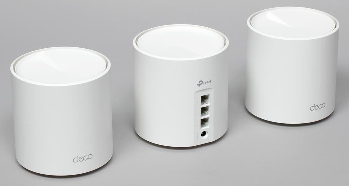 В тестировании участвовал набор из трех узлов. Также на рынке представлены версии из двух и одного узла. Отметим, что все модели Deco могут работать в одной общей сети, а число узлов, по информации производителя, может достигать десяти. Так что вполне можно начать с пары, а потом при необходимости расширить зону покрытия, докупив еще узлов.