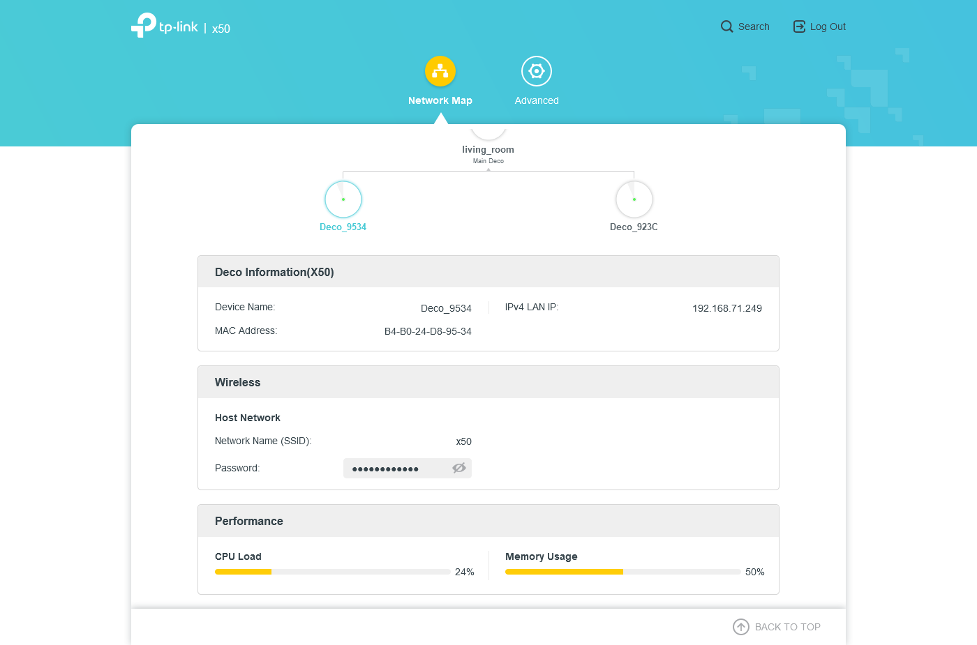 Для второго — состав сети, внутренний адрес выбранного узла, загрузка его процессора и оперативной памяти. Здесь же можно посмотреть пароль беспроводной сети. К сожалению, нет информации о типе подключения узлов между собой и качестве сигнала.