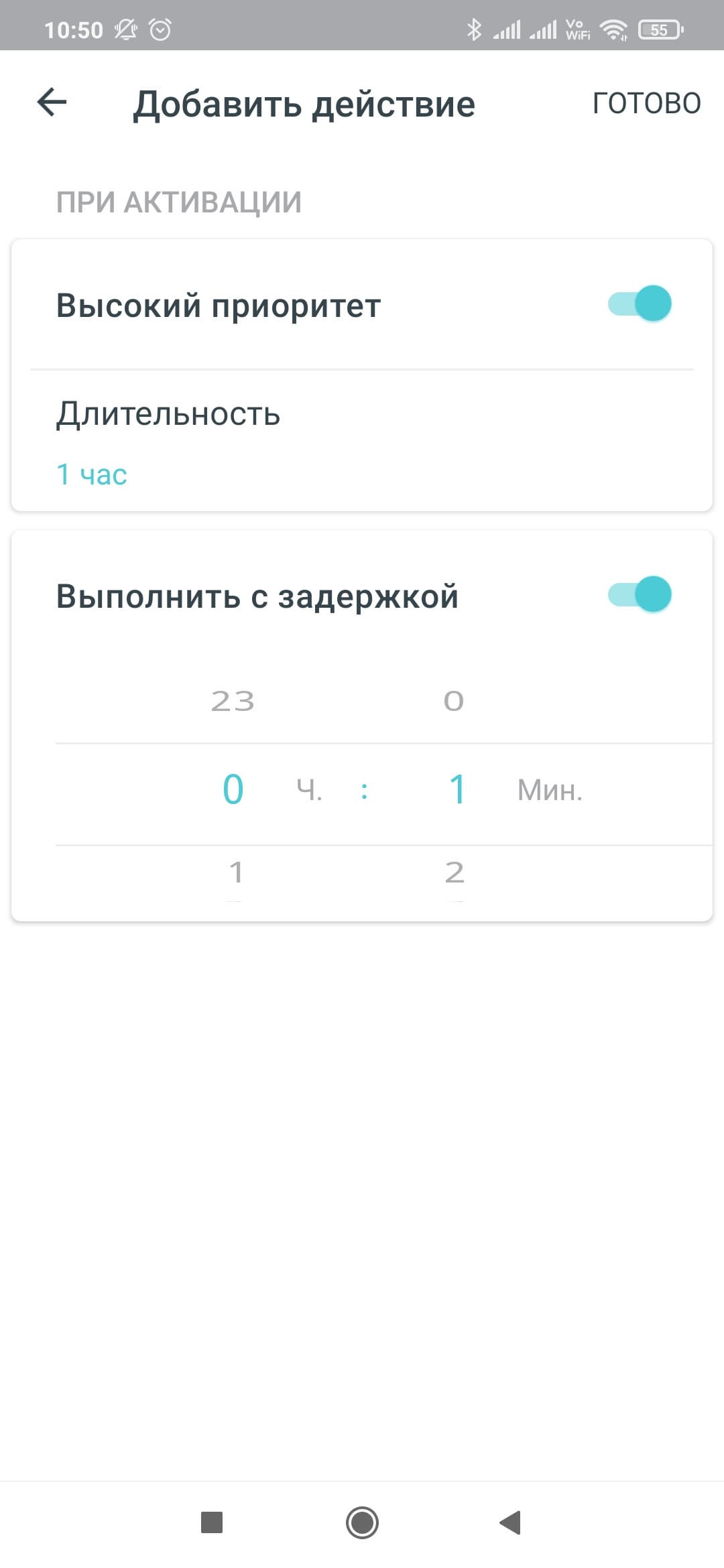 Новый раздел в рассматриваемой версии приложения — «Действия умного дома». На первой вкладке вы можете создать собственные ярлыки для оперативного запуска действий. Для сетевых клиентов это может быть активация высокого приоритета на заданное время.