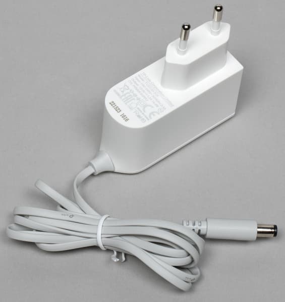 Компактные блоки питания имеют параметры 12 В 1,2 А и мягкий плоский серый кабель длиной 1,5 м, который заканчивается стандартным круглым штекером. Сетевой патч-корд также плоский и серый. Он имеет длину 1,2 м и укороченные разъемы.