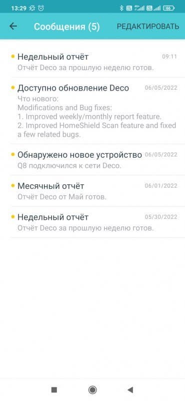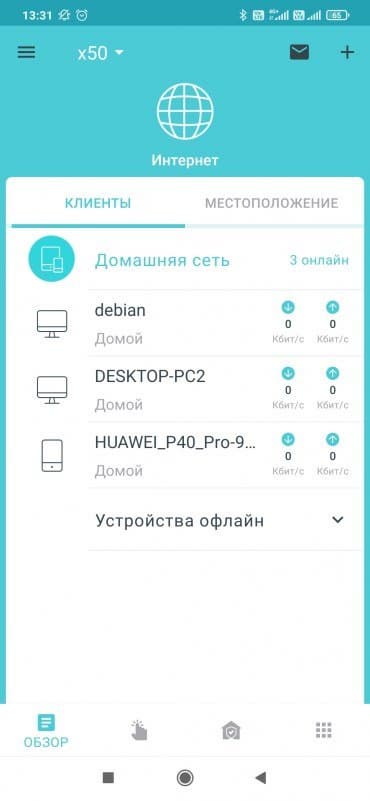 Дальнейшая работа и настройка системы осуществляется через мобильное приложение. Оно может работать и в облачном режиме — вам не обязательно подключаться именно к беспроводной сети Deco. Но через облако нельзя менять некоторые настройки по соображениям безопасности. Напомним, что можно иметь в одном аккаунте несколько независимых сетей для управления. Взаимодействие с облаком также позволяет реализовать систему push-уведомлений (например, о подключении к сети новых клиентов или выходе обновления ПО), а также формирование регулярных отчетов по трафику, времени в сети и другой информации. Само приложение мало отличается от ранее описанного для системы Deco X20. И на первый взгляд, нет смысла его детально обсуждать. Однако все-таки за это время программа обновилась и в ней появились новые возможности.