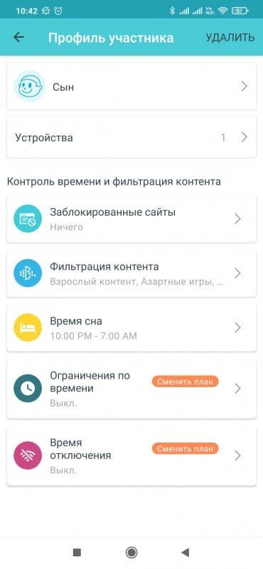 Про набор функций TP-Link HomeShield мы подробно писали в начале года и не будем здесь повторяться. Данная технология позволяет сгруппировать устройства по профилям для членов семьи. При этом в профиле предусмотрены настройки фильтрации контента, ограничения по времени работы в сети и другие параметры. Сервис имеет расширенную версию с платной подпиской. Дополнительно здесь есть настройки приоритизации и регулярные отчеты по использованию интернета.