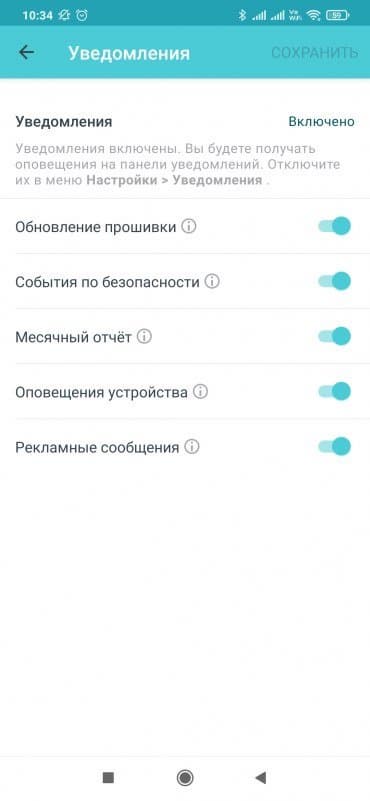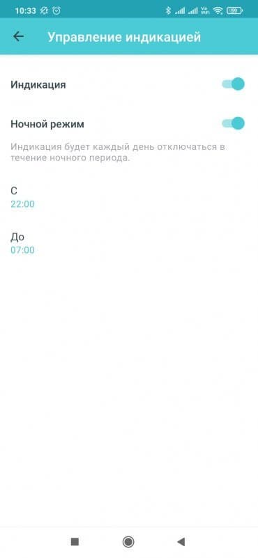 Система имеет возможность отключения светодиодных индикаторов в ночное время или постоянно. Настройки системы уведомлений включают в себя выбор типов сообщений. В частности, есть возможность получать информацию о подключении к сети клиентов.