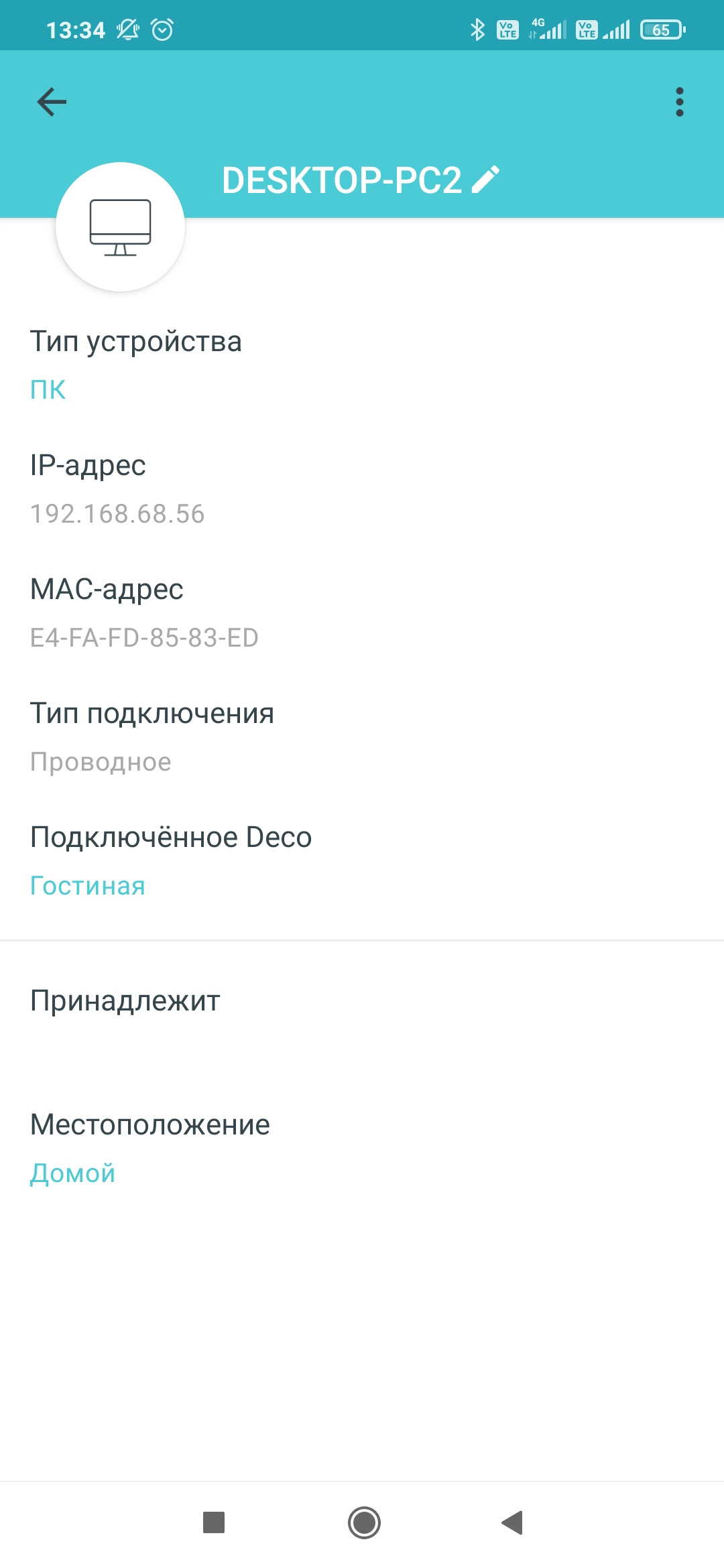 На главной странице мы видим состояние подключения к интернету и список клиентов в домашней сети. При выборе клиента можно будет посмотреть информацию о нем (в частности, MAC- и IP-адреса) и узел подключения, включить для него высокий приоритет, переименовать, выбрать тип устройства (влияет на иконку) и место расположения, выбрать профиль владельца, заблокировать доступ, отключить бесшовный роуминг по технологии Mesh и так далее. На вкладке «Местоположение» также указаны все клиенты, но уже с разбивкой по комнатам. Отметим, что система запоминает ранее подключавшихся клиентов и также позволяет настроить их, даже если они сейчас в состоянии оффлайн.