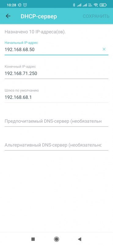 В настройках локальной сети есть знакомые пункты по выбору собственного адреса, диапазона адресов и опций в сервере DHCP, а также резервирование адресов.