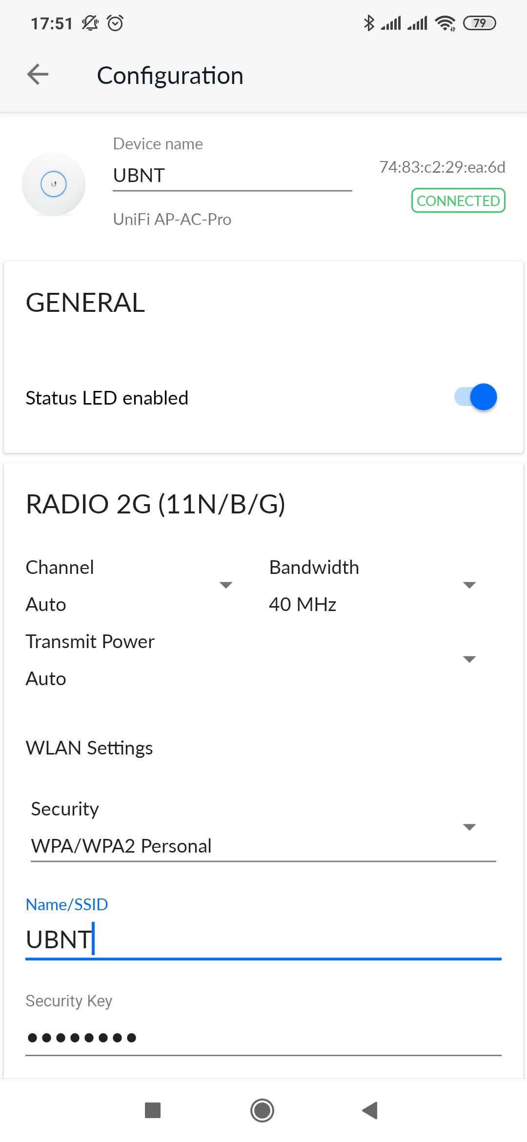 Собственно настройки беспроводных сетей через мобильное приложение минимальные — выбор имени, номера канала, ширины канала, мощности передачи и защиты (здесь можно выбрать WPA2-PSK). Можно использовать одинаковые параметры для имени и защиты для двух диапазонов или же выбрать разные. Для каналов и мощности передачи есть варианты «Авто» или ручной установки. Кроме того, можно изменить имя для точки доступа, отключить светодиод статуса, независимо выключить радиоблоки, обновить прошивку (с загрузкой новой версии через Интернет). В штатном режиме работы индикатор горит синим. В документации приводится описание и других статусов (например, мигание синим — обновление прошивки).