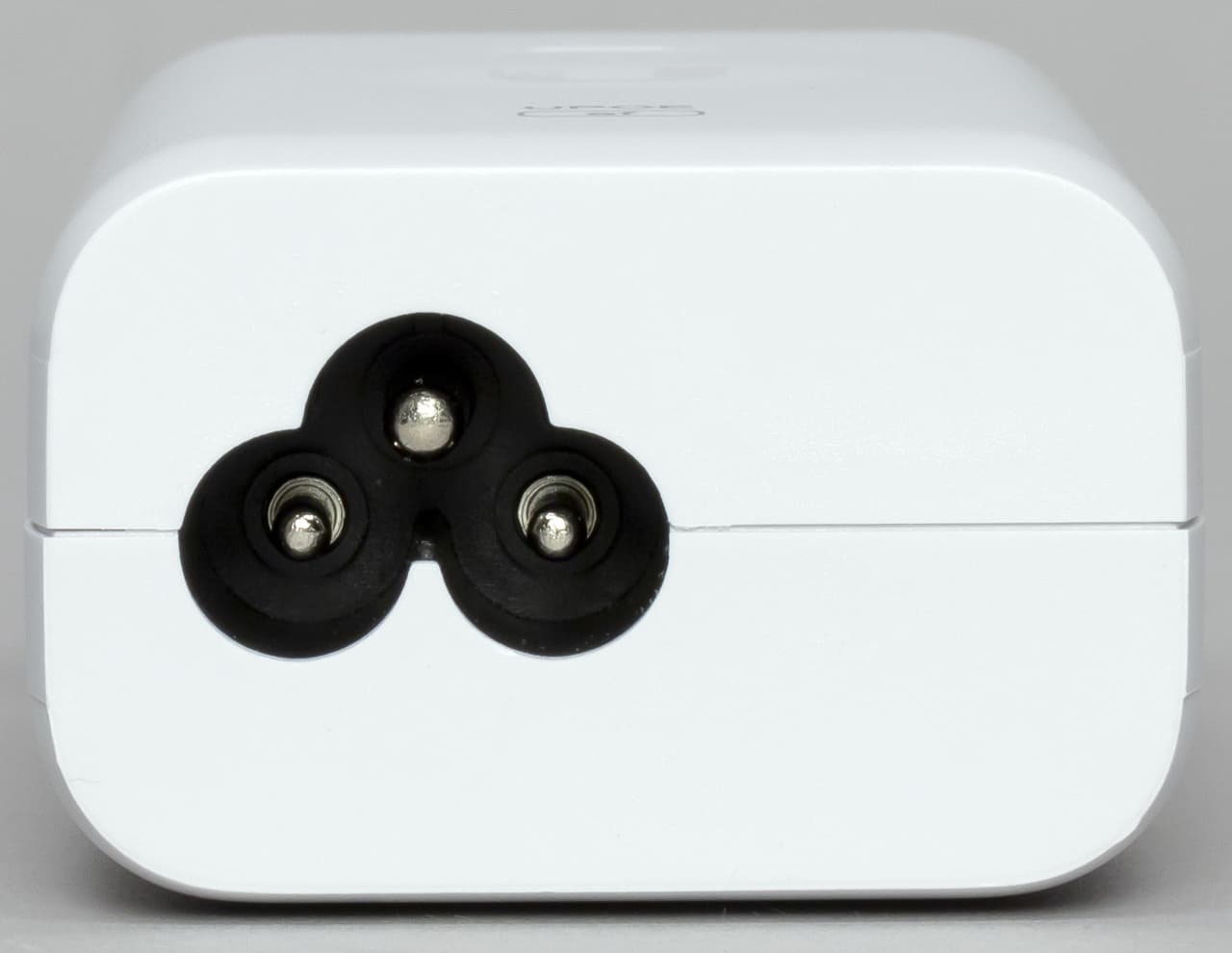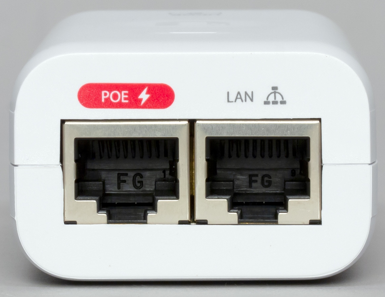 Инжектор имеет компактный (всего 81×46×31 мм) корпус из матового белого пластика. На одном из торцов находится вход кабеля питания по стандарту C6 (такой часто бывает у блоков питания ноутбуков), а на противоположном — два сетевых разъема без индикаторов.