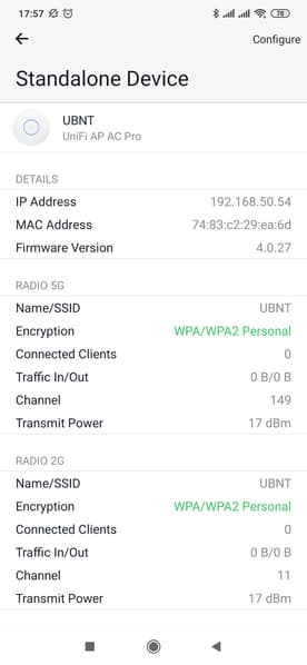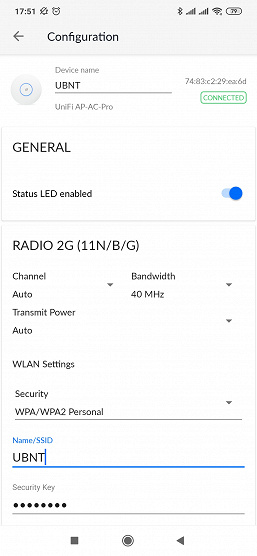 После непродолжительной загрузки индикатор на точке доступа начинает гореть белым — точка в состоянии с завода или после сброса и ожидает команд по настройке. Теперь необходимо осуществить конфигурацию устройства. В отличие от большинства домашних моделей, здесь не предусмотрено привычного веб-интерфейса. Так что даже для одной точки доступа потребуется управляющий контроллер или же можно настроить ее через мобильное приложение. Оно есть для Android и iOS и бесплатно скачивается из соответствующих магазинов.