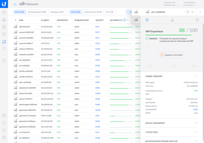 Конечно, приведенные примеры для одной точки доступа не очень впечатляют. Так что покажем, как это будет выглядеть для больших сетей. Картина здесь, конечно, более интересная.