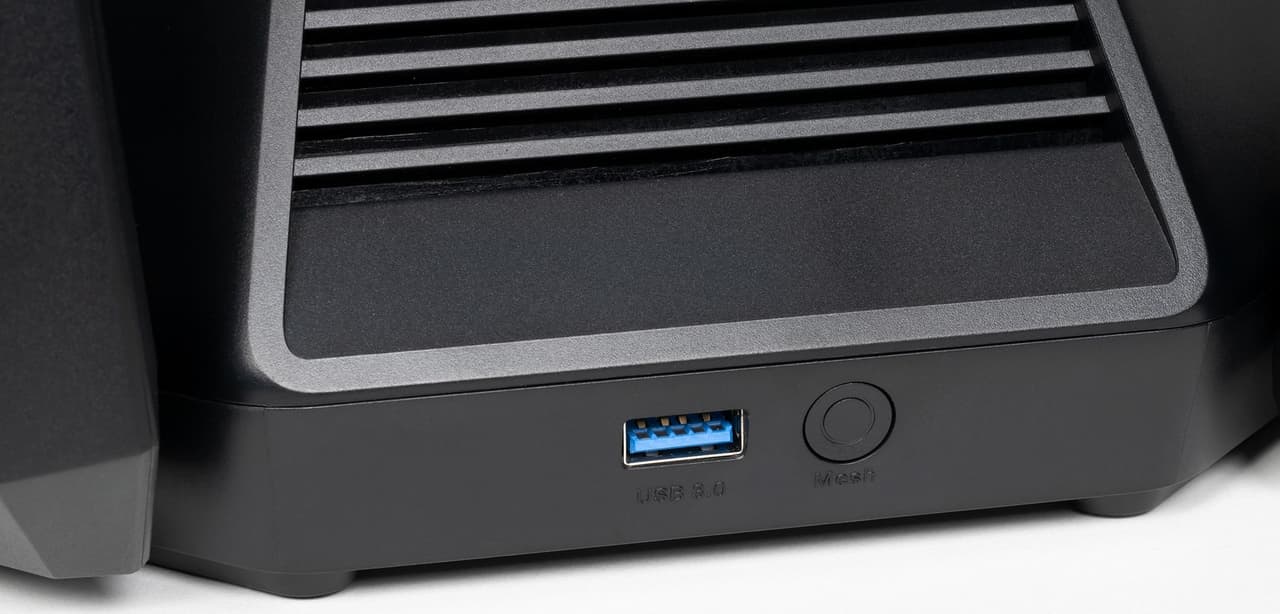 Слева разместили единственный порт USB 3.0. Рядом с ним можно заметить кнопку Mesh для построения одноименной беспроводной системы.
