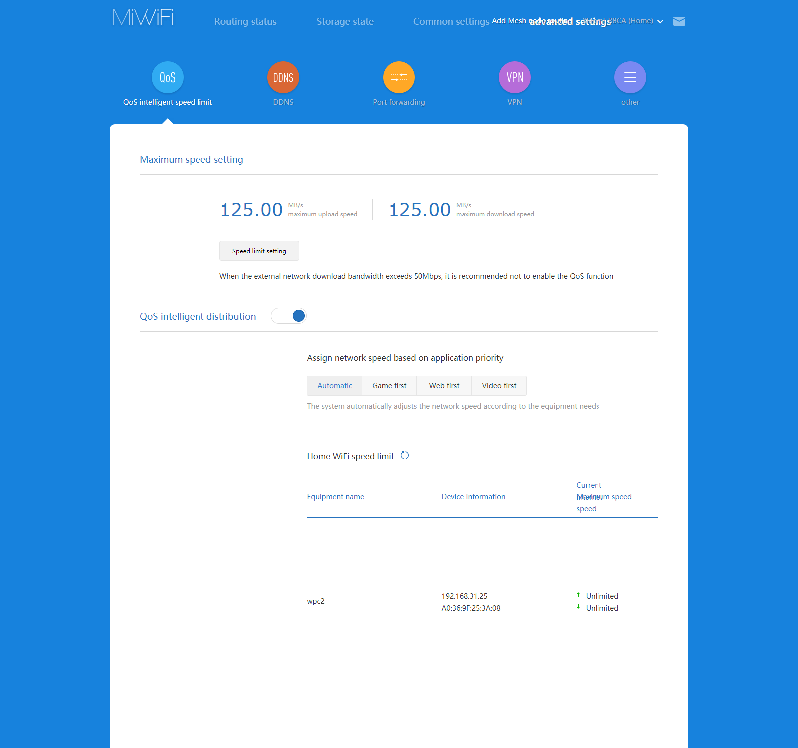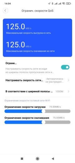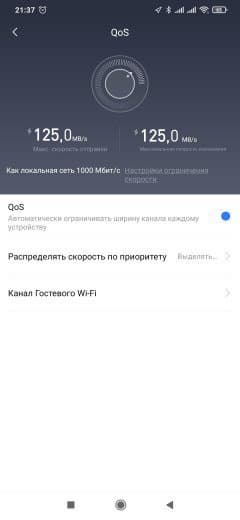 Раздел с дополнительными настройками содержит пять страниц. Первая отвечает за работу сервиса управление полосой пропускания. По умолчанию он отключен. При активации нужно будет указать скорость интернет-канала. Далее идет общая настройка приоритизации трафика — автоматический выбор приоритета, приоритет на игры, просмотр страниц сайтов или просмотр видео. Дополнительно для каждого клиента локальной сети можно установить индивидуальные ограничения на скорости получения и передачи информации. Отдельно устанавливаются ограничения на гостевой Wi-Fi.