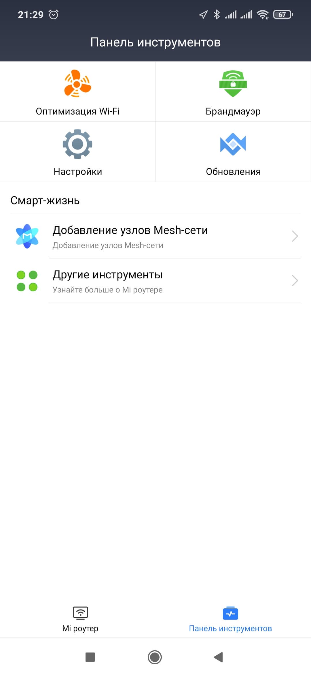 Раздел с настройкой Mesh-сети проверить возможности не было, поскольку тестировался только один роутер.