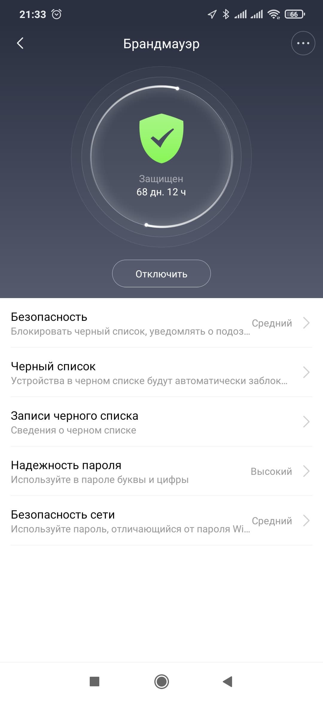 «Брандмауэр» немного более информативен, но все равно назначение данного модуля не очень понятно. Выглядит все так, что система каким-то образом определяет «подозрительных» клиентов и автоматически блокирует им доступ. На этой же странице можно заменить пароли доступа к Wi-Fi и самому роутеру.