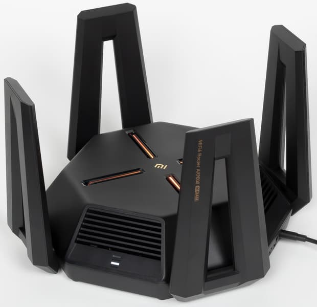 Топовая модель беспроводного роутера Xiaomi AX9000 произвела сильное впечатление. Крупный красивый корпус с необычным дизайном сложно назвать универсальным, но он явно будет привлекать внимание. Аппаратная конфигурация также достойна уважения: мощный многоядерный процессор, огромный объем оперативной памяти, сетевой коммутатор на быстрой шине и дополнительный порт 2,5 Гбит/с, порт USB 3.0 и, что, вероятно, самое главное — три независимые точки доступа с поддержкой Wi-Fi 6. Во всех проведенных тестах роутером были показаны очень достойные результаты производительности.