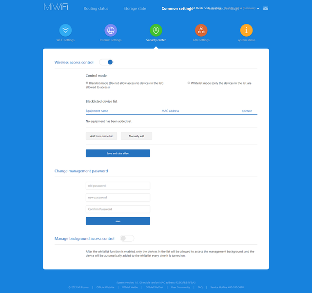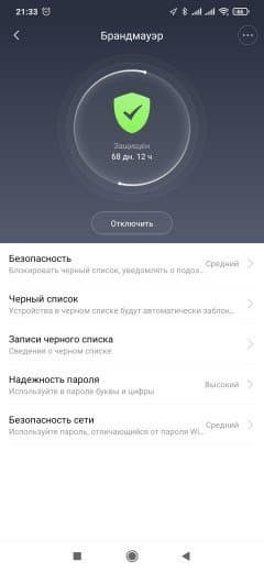 Настройки безопасности включают в себя создание списка доступа беспроводных клиентов («черного» или «белого»), изменение пароля администратора (после первоначальной настройки он совпадает с паролем Wi-Fi), создание списка доступа к интерфейсу управления роутером.