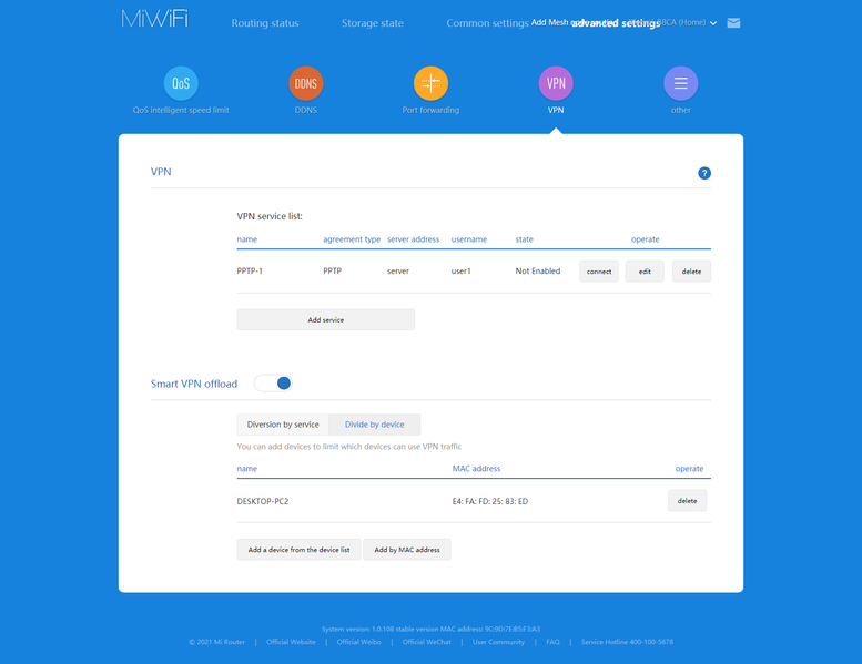 Также здесь предусмотрена функция для выбора доступных через VPN-соединение ресурсов или вывод конкретных клиентов в интернет через него. Правда, профиль только один. То есть не получится использовать разные VPN для разных ресурсов или клиентов.