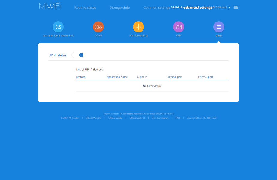 На последней странице раздела есть только переключатель для включения функции автоматического открытия портов UPnP и просмотр таблицы текущих правил.