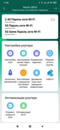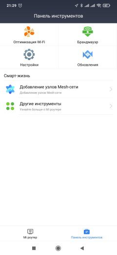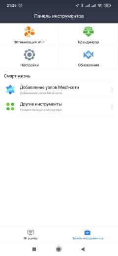 Доступные из программы настройки самого роутера собраны в разделе «Панель инструментов», в который можно перейти с главного экрана. Что конкретно делает «Оптимизация Wi-Fi» не очень понятно. Вероятно, этот сервис подбирает наиболее удобные каналы для работы. Но реального эффекта от него заметить не удалось. Все проверки заканчивались сообщением «у вас все отлично».