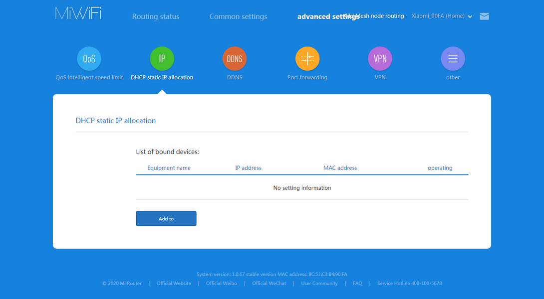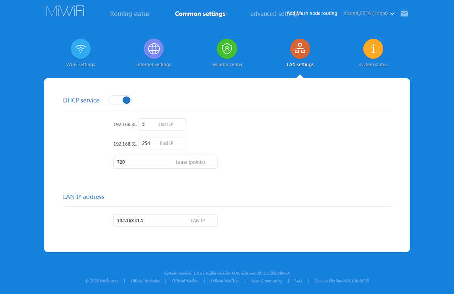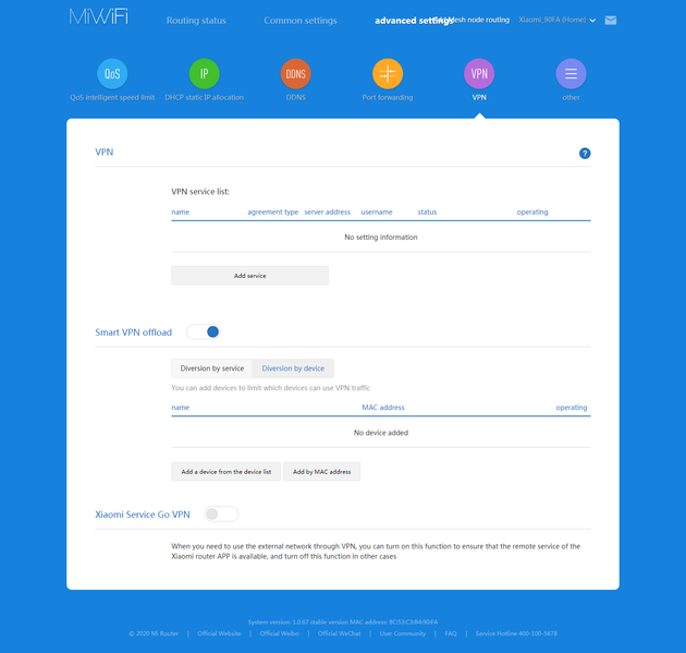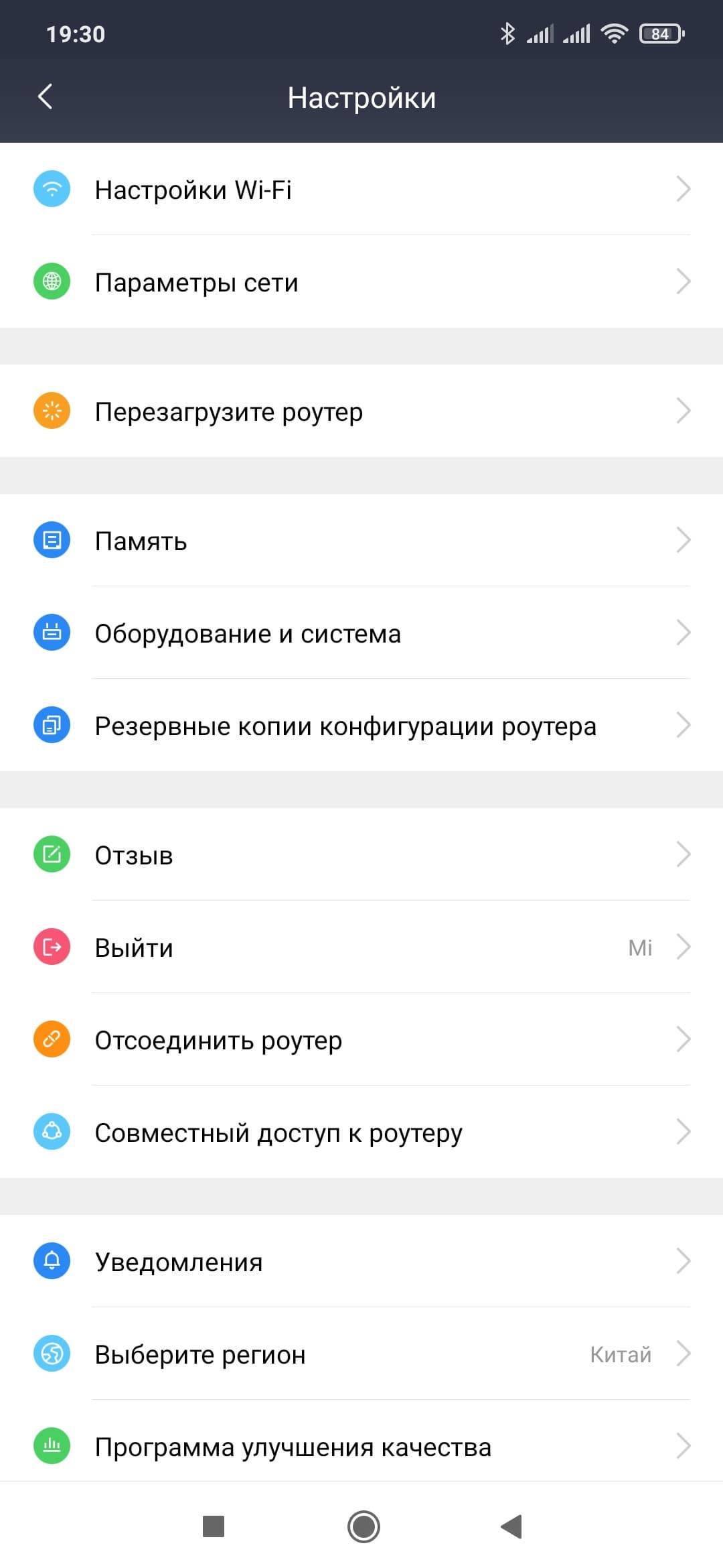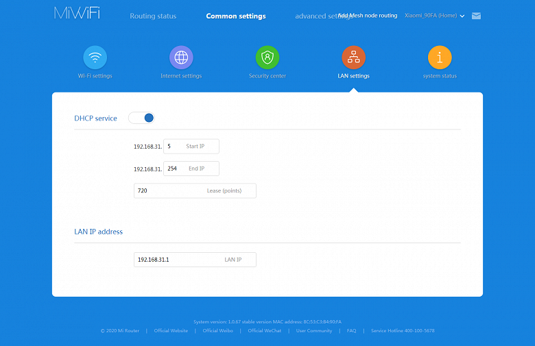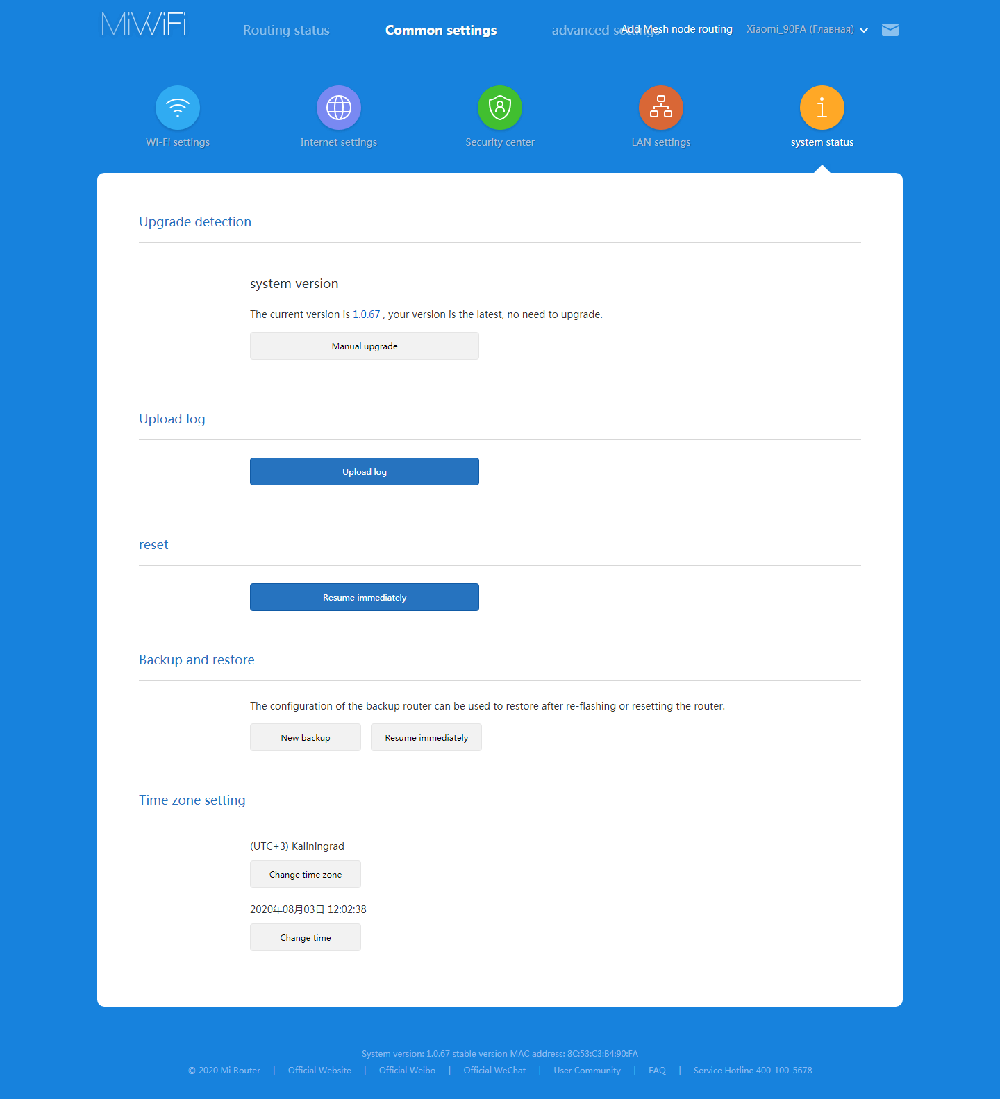 Далее идут пункты перезагрузки роутера, отключения индикаторов, настройки внутренних часов, обновления прошивки, изменения пароля администратора, сброса настроек, переименовать роутер и так далее. Кроме того, можно сохранять резервные копии настроек в облаке, что позволит в дальнейшем загрузить их на новое устройство. При подключении роутера к облаку Mi, можно предоставить доступ к нему другим пользователям этого сервиса.