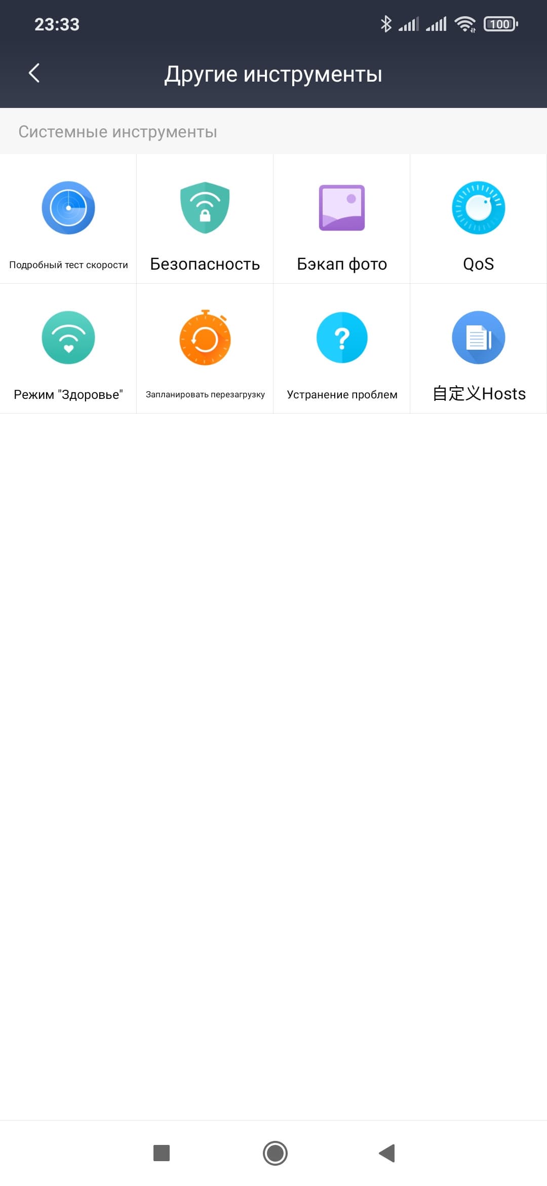 «Режим “Здоровье”» используется для настройки расписания отключения беспроводных точек доступа. Еще один вариант для расписания — перезагрузка роутера. Хотя в большинстве случаев этого все-таки не требуется. «Устранение проблем» не переведено, так что бесполезно для нас. Последний пункт используется для редактирования файла hosts, что позволяет блокировать ресурсы на сервере DNS.
