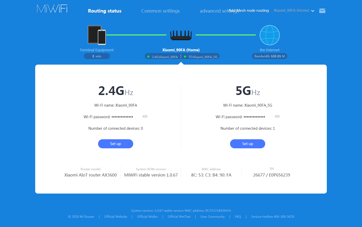 Интересно, что разработчик обновлениями прошивки существенно изменил некоторые из описанных выше характеристик. В частности, в используемой для тестирования 1.0.67 частота ядер процессора составляет 1,4 ГГц (по информации производителя), а радиомодуль на 5 ГГц умеет работать с полосой 160 МГц, и, кроме того, была добавлена функция Mesh-системы.