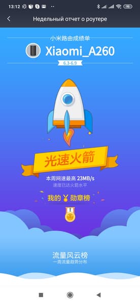 На странице «Недельный отчет о роутере» вместо ожидаемой статистики по трафику для клиентов показывается «зал славы» на китайском языке. В нем, видимо, приводятся максимальная скорость и объем трафика, но разобраться без перевода не представляется возможным.