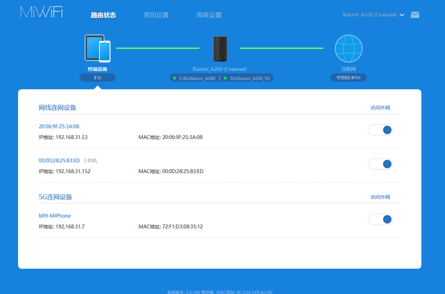 По клику на значке числа клиентов можно перейти к списку устройств, где узнать имена, адреса и способы их подключения. Здесь же оперативно можно запретить им доступ к сети.