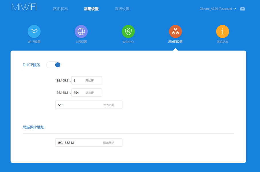 Четвертая страница в группе поможет настроить адреса в домашней локальной сети — здесь можно поменять собственный адрес роутера и выбрать диапазон адресов для выдачи клиентам.