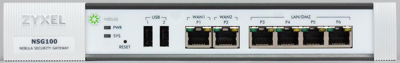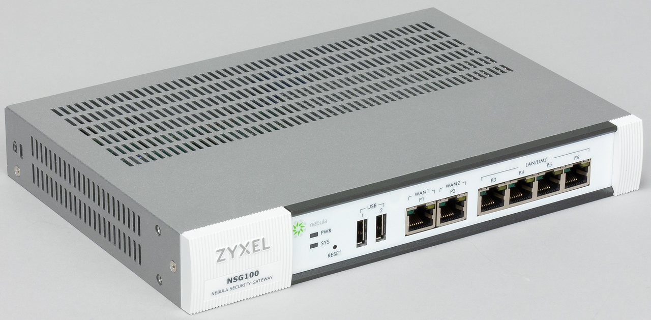 Всего в линейке шлюзов представлено четыре модели, отличающиеся в основном общей производительностью и набором портов. Из них NSG100 является вторым в линейке и способен обеспечить до 450 Мбит/с через межсетевой экран и до 150 Мбит/с по VPN. В комплект поставки шлюза входит внешний блок питания (12 А 2,5 А), уголки для крепления в стойку, резиновые ножки, консольный кабель, краткая инструкция, гарантийный талон.