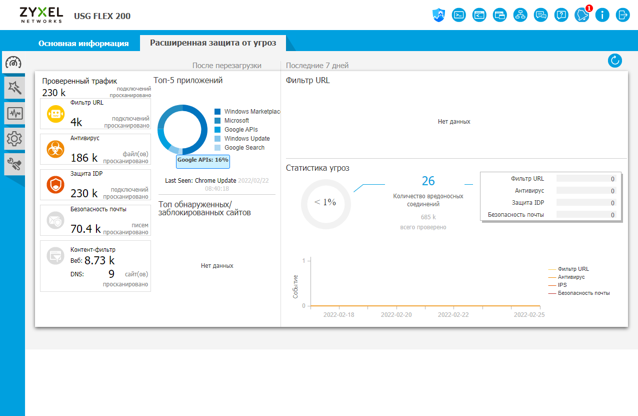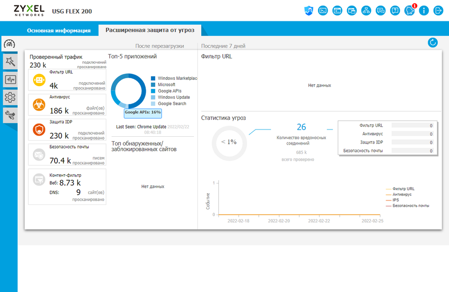 По своим возможностям все модели серии USG Flex похожи. Из сервисов комплексной защиты сети UTM (Unified threat management) поддерживаются: